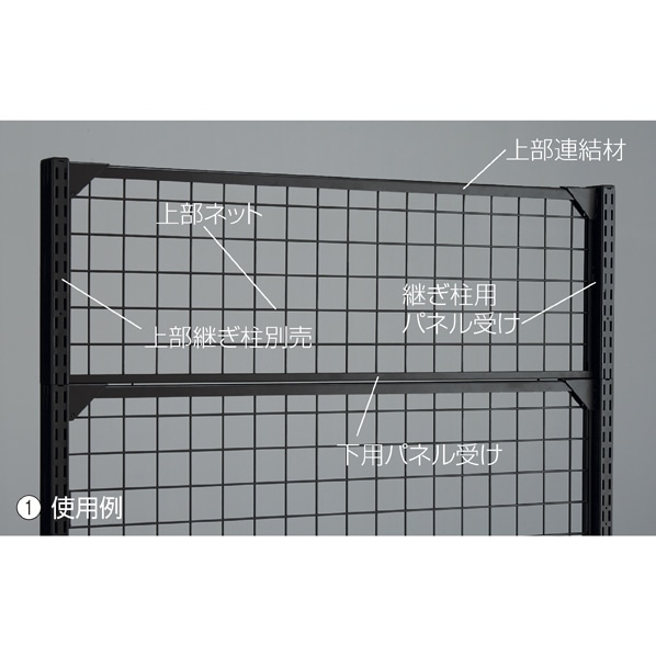 - 上部連結材×1 上部ネット×1 下用パネル受け×1 継ぎ柱用パネル受け×2