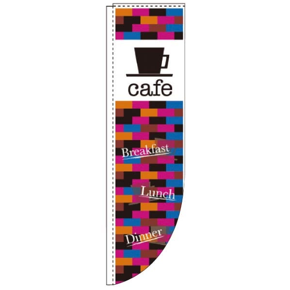Rのぼり・・・のぼりが巻き上がらない棒袋仕様。R形状でポールが見えない仕様のため、お洒落に訴求できます。