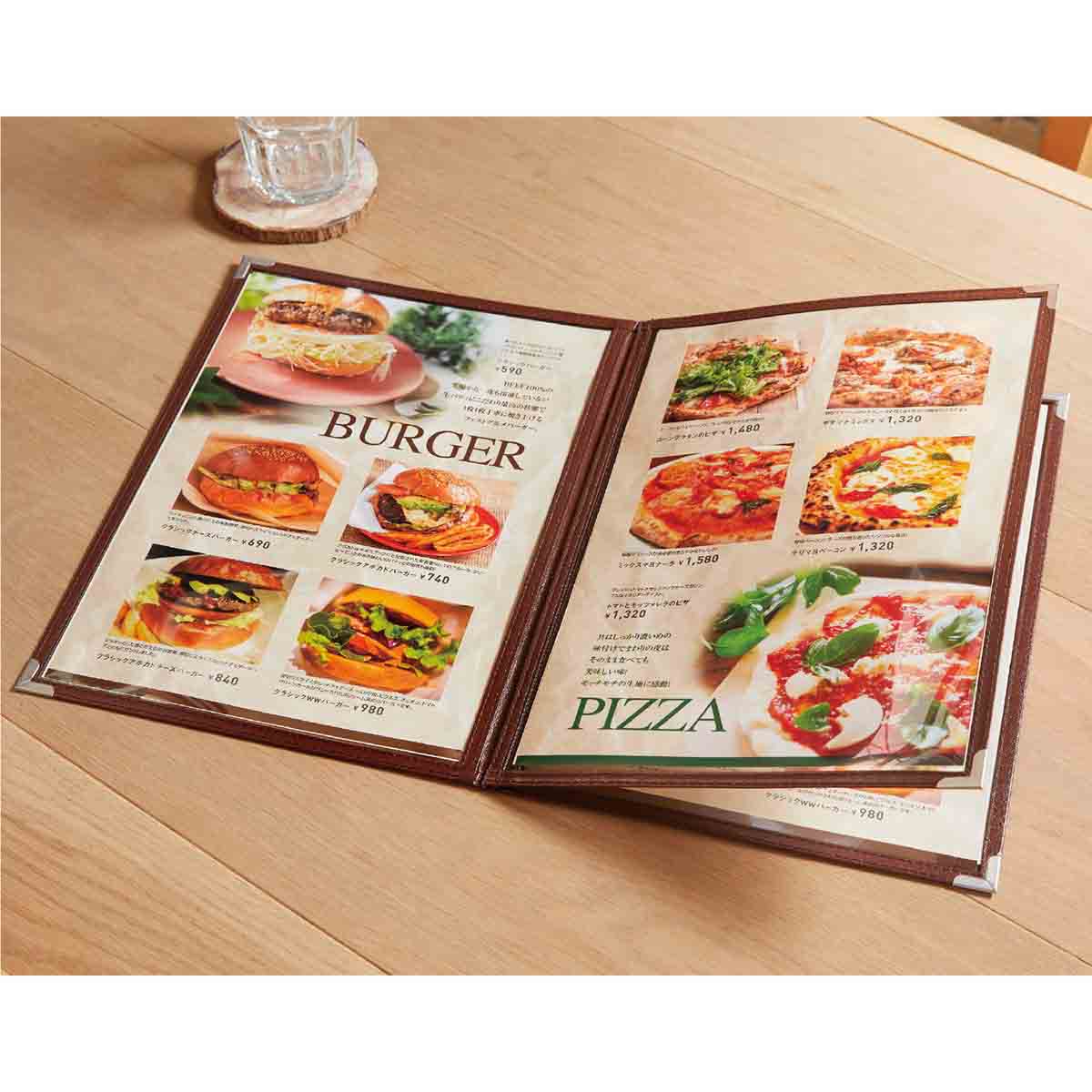 中紙を入れるだけで手軽に使える、ローコストメニューブックです。 カフェ・レストランなど様々な場所でお使いいただいている、定番品、ロングセラー商品です。 [A4対応]