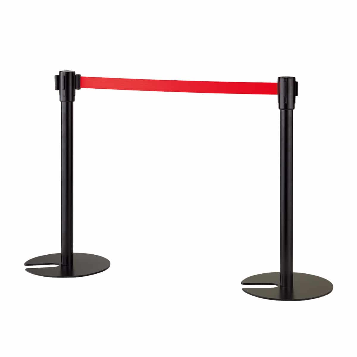 落ち着いた風合のブラック塗装のベルトパーテーション/ガイドポール。