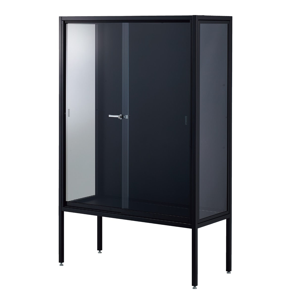 ラテラルショーケース ブラック 本体 W90cm パネル:ブラック〔ストエキオリジナル〕