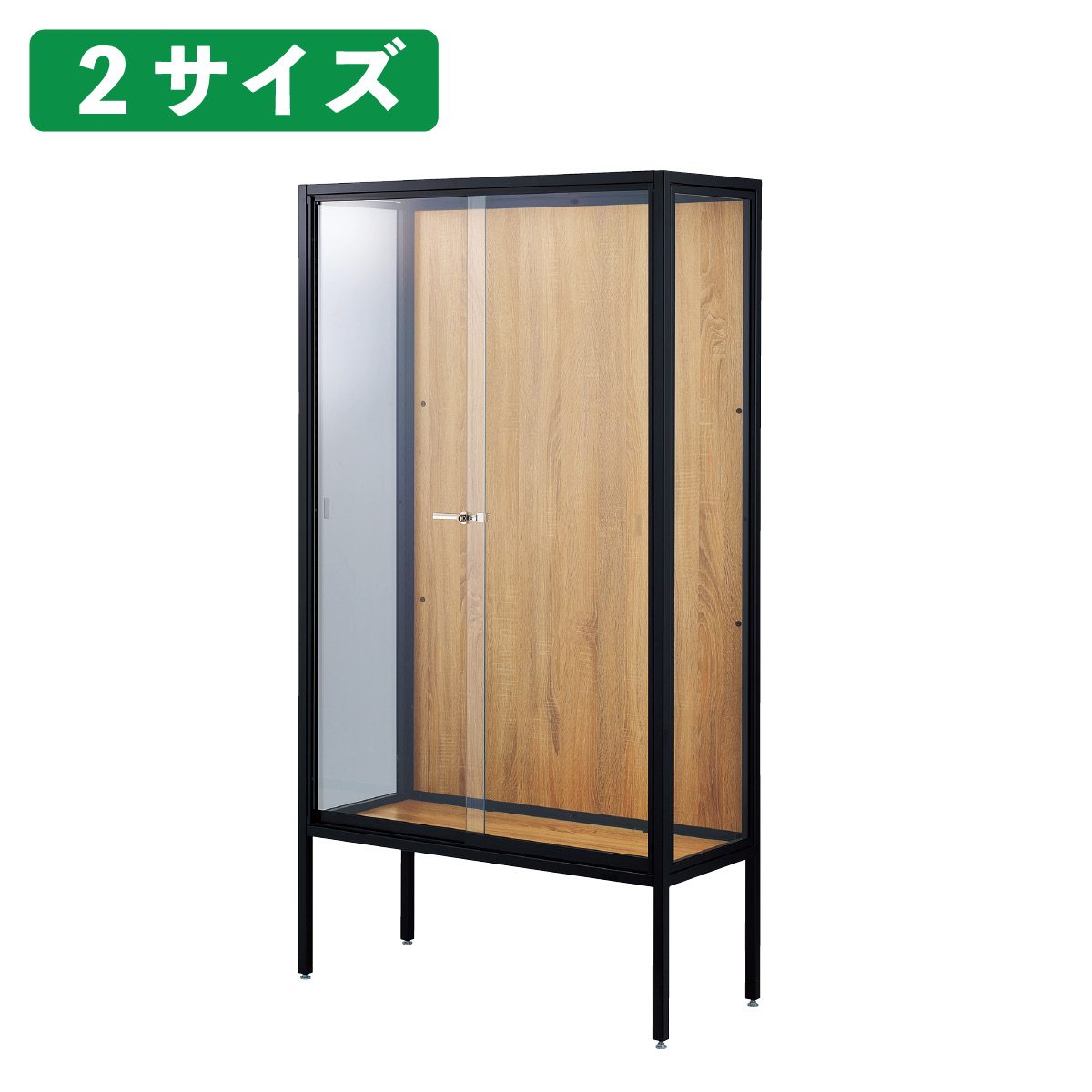 ラテラルショーケース ブラック 本体 W90cm パネル:ラスティック柄〔ストエキオリジナル〕