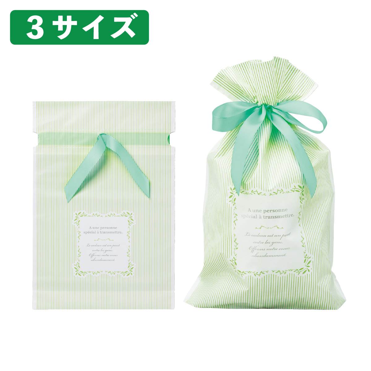 淡いミントグリーンのストライプが爽やかなリボン付きギフトバッグはホワイトデーのプレゼント用におすすめ。
