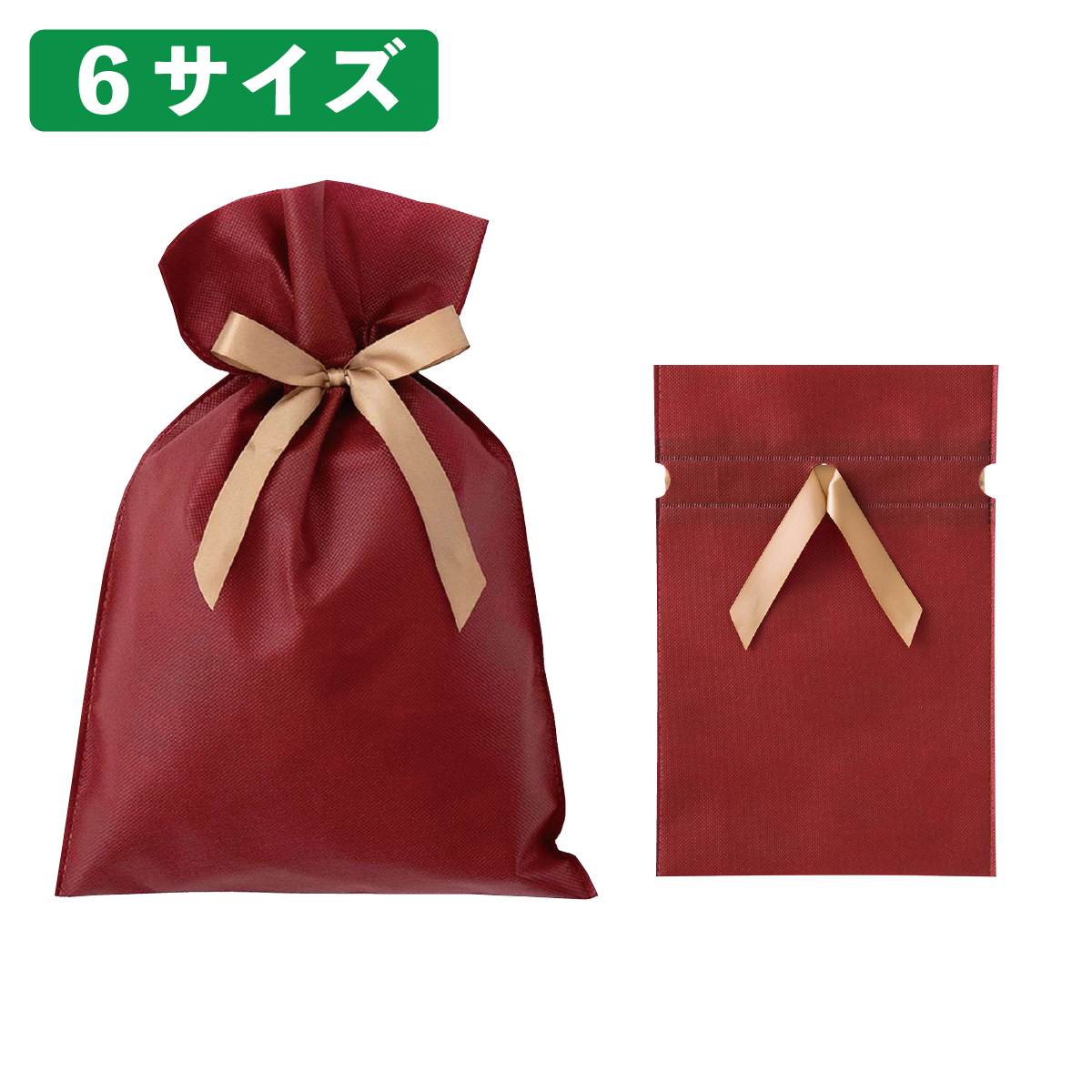 10枚 不織布リボン付きギフトバッグ シックカラー ワイン