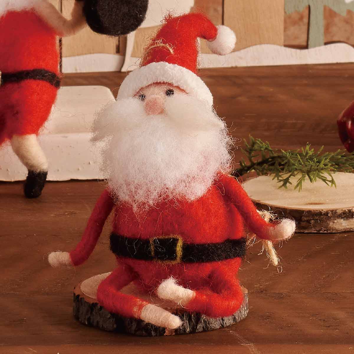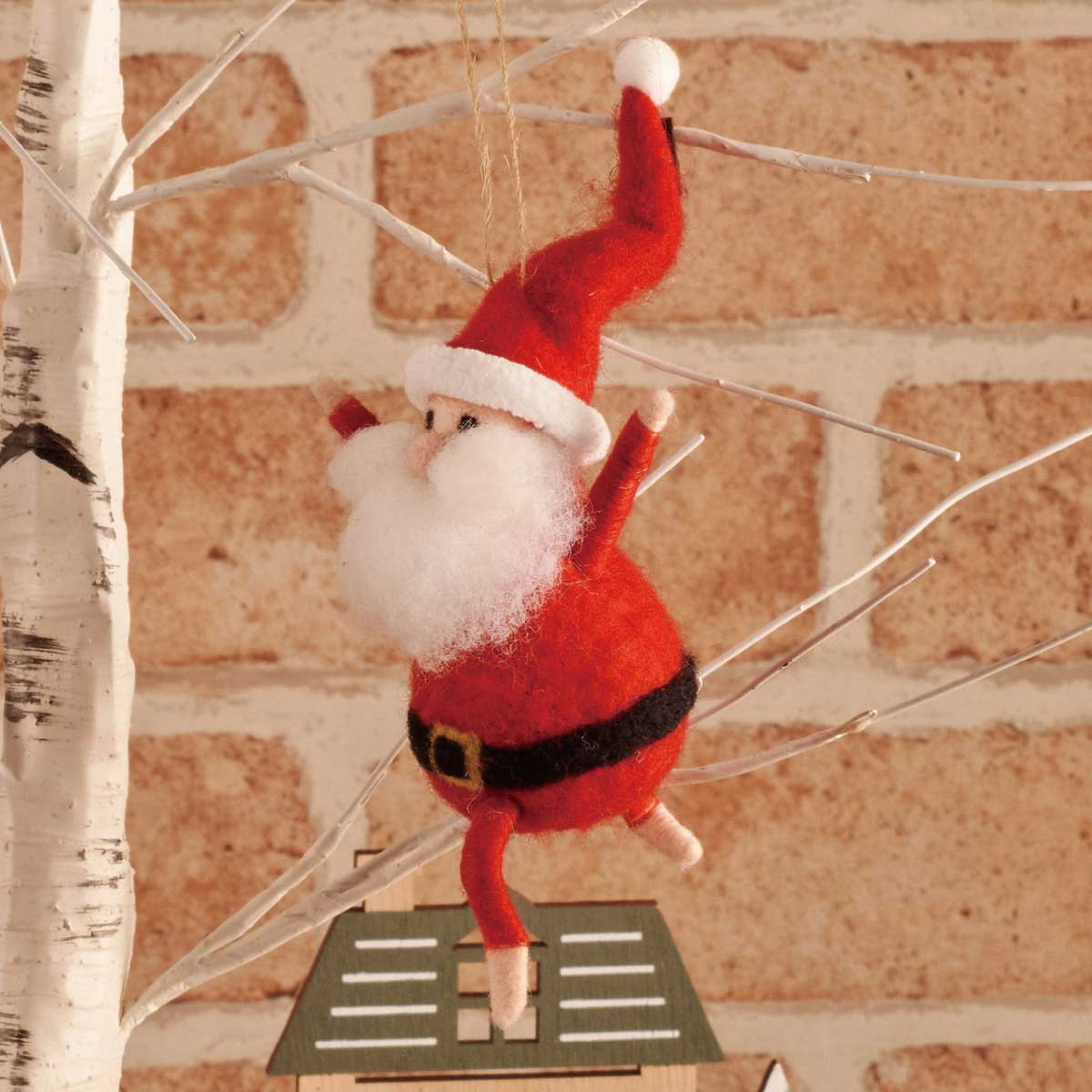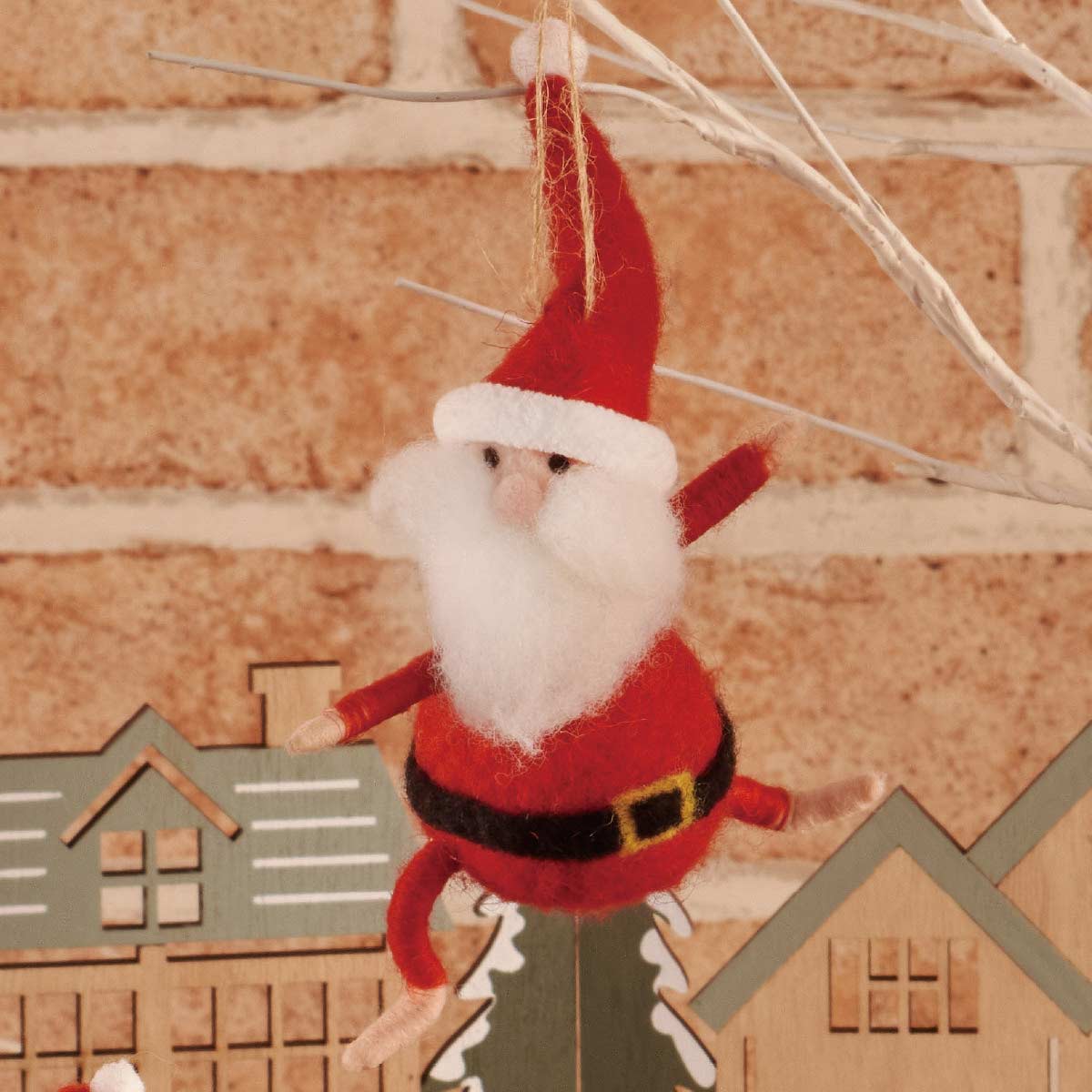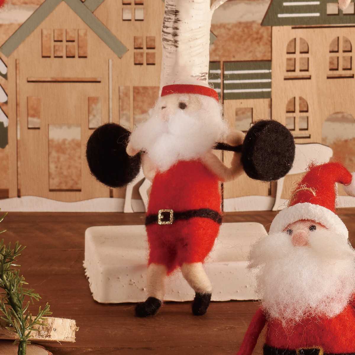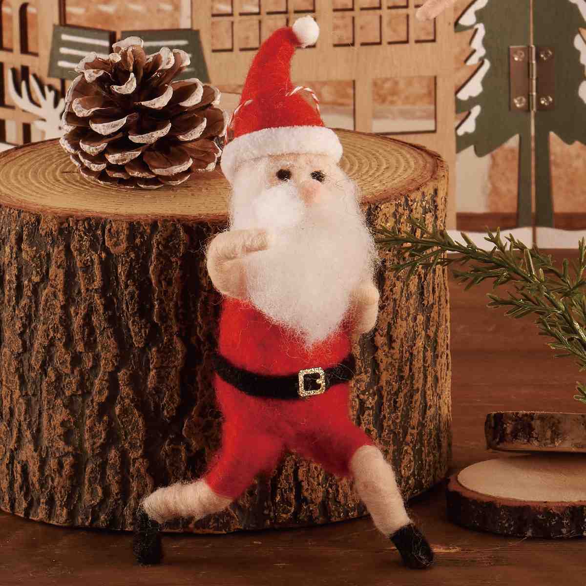 ユニークなポージングの楽しいフェルトサンタたち。たくさん飾って動きのあるディスプレイに。