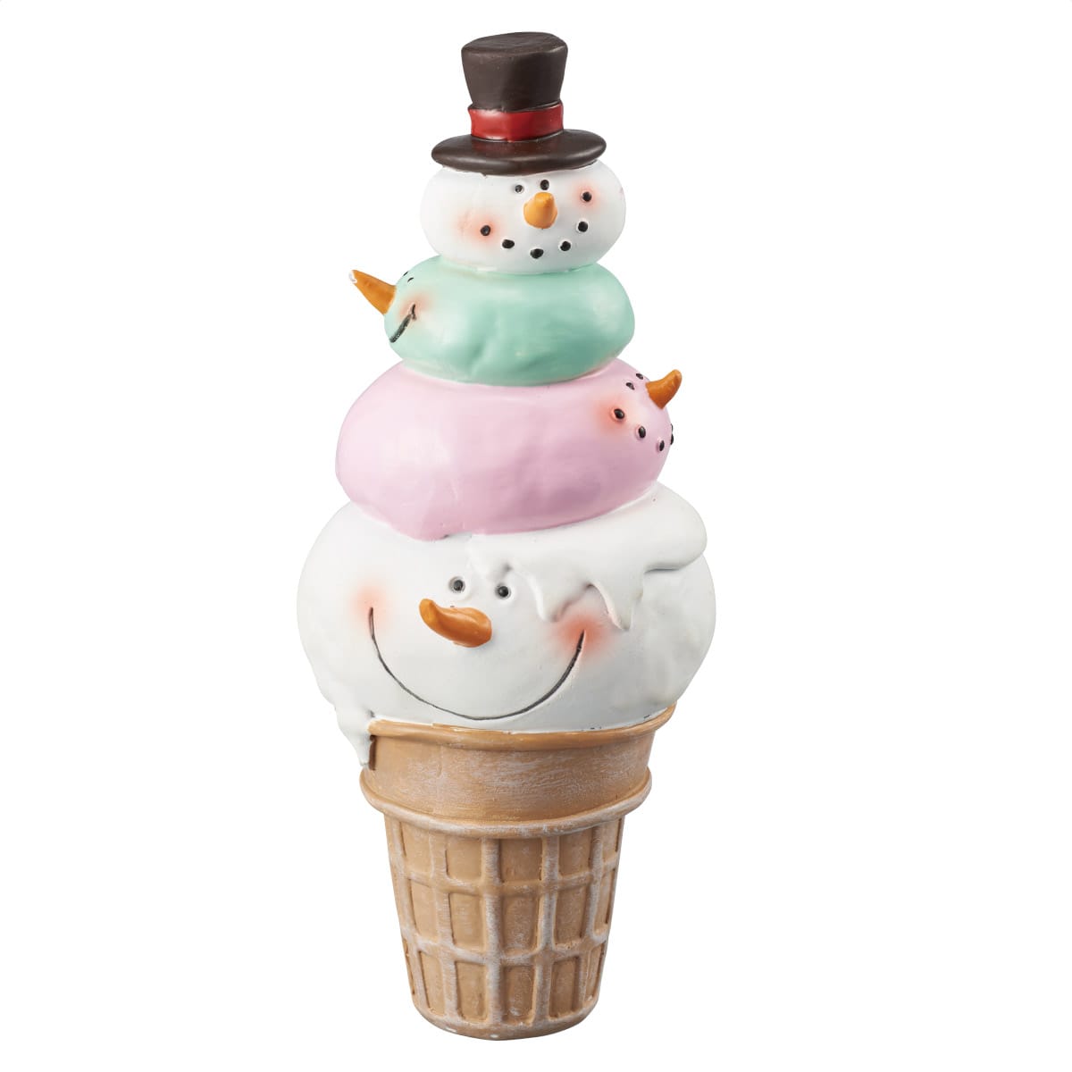 アイスクリームと雪だるまをあわせたかわいらしいデザインのオブジェ。