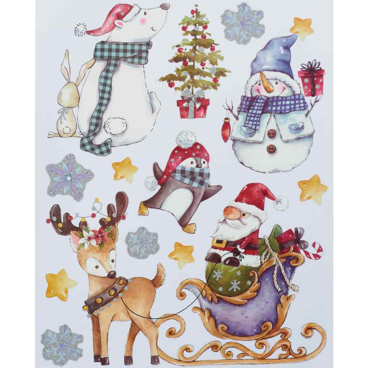 ショーケースや窓ガラス、鏡にシールを飾ってクリスマスらしい店舗ディスプレイに。