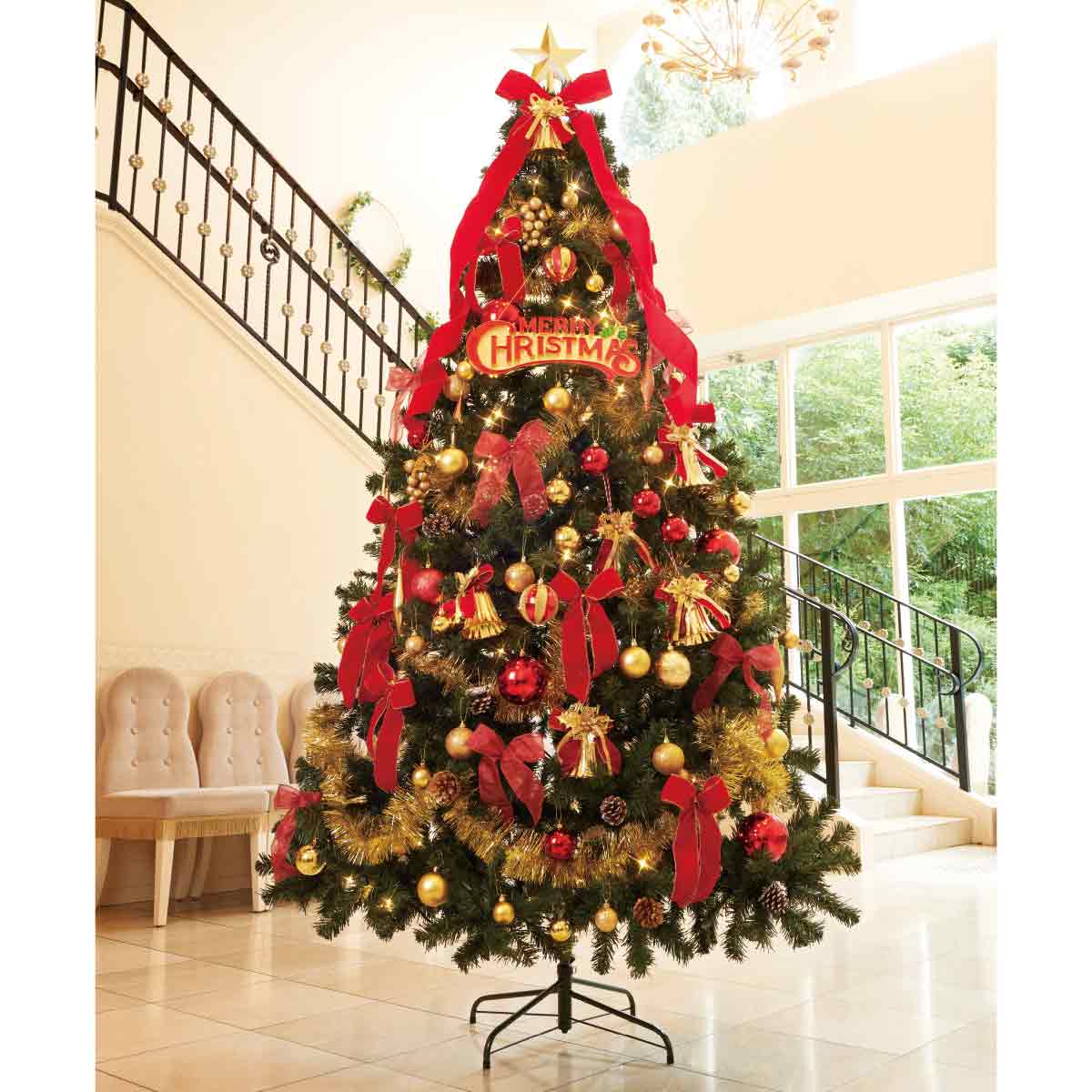 商品写真のオーナメントは前面を中心に飾り付けしています。高さ300cm以上のツリーは、ひもや重しなどで確実に固定してご使用ください。