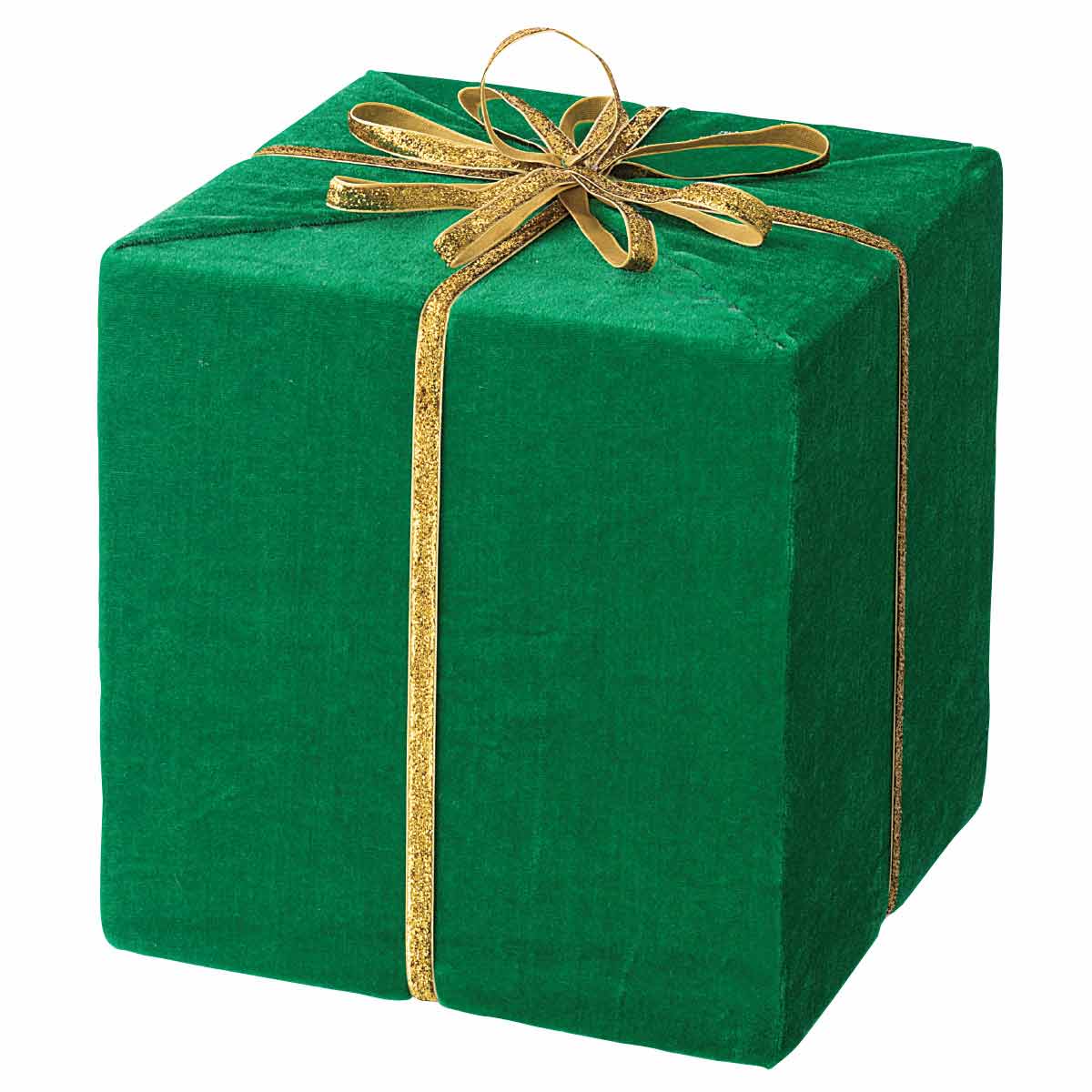 25cm角の緑と赤のクリスマスプレゼントボックス。クリスマスツリーの足元に置いたり、ディスプレイテーブルに置いたり。ひも付きなので天井から吊るして飾ることもできます。大きめサイズで存在感も抜群!