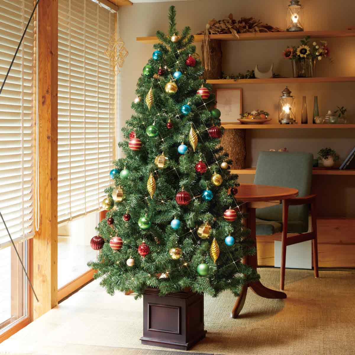 遊び心のあるカラフルなオーナメント付きツリーは今年イチオシのクリスマスツリーです!色とりどりの輝きが、ポップなホリデームードを彩る主役に。