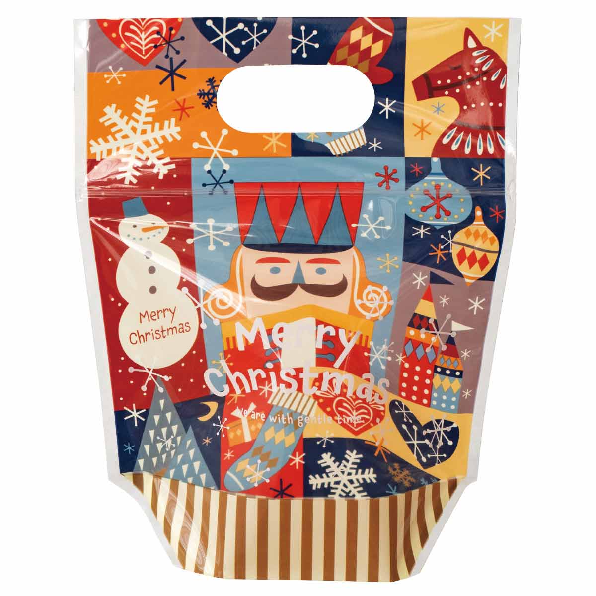 クリスマスの定番、くるみ割り人形を北欧テイストで華やかにアレンジ!【クリスマス北欧】シリーズのジップ付き袋です。