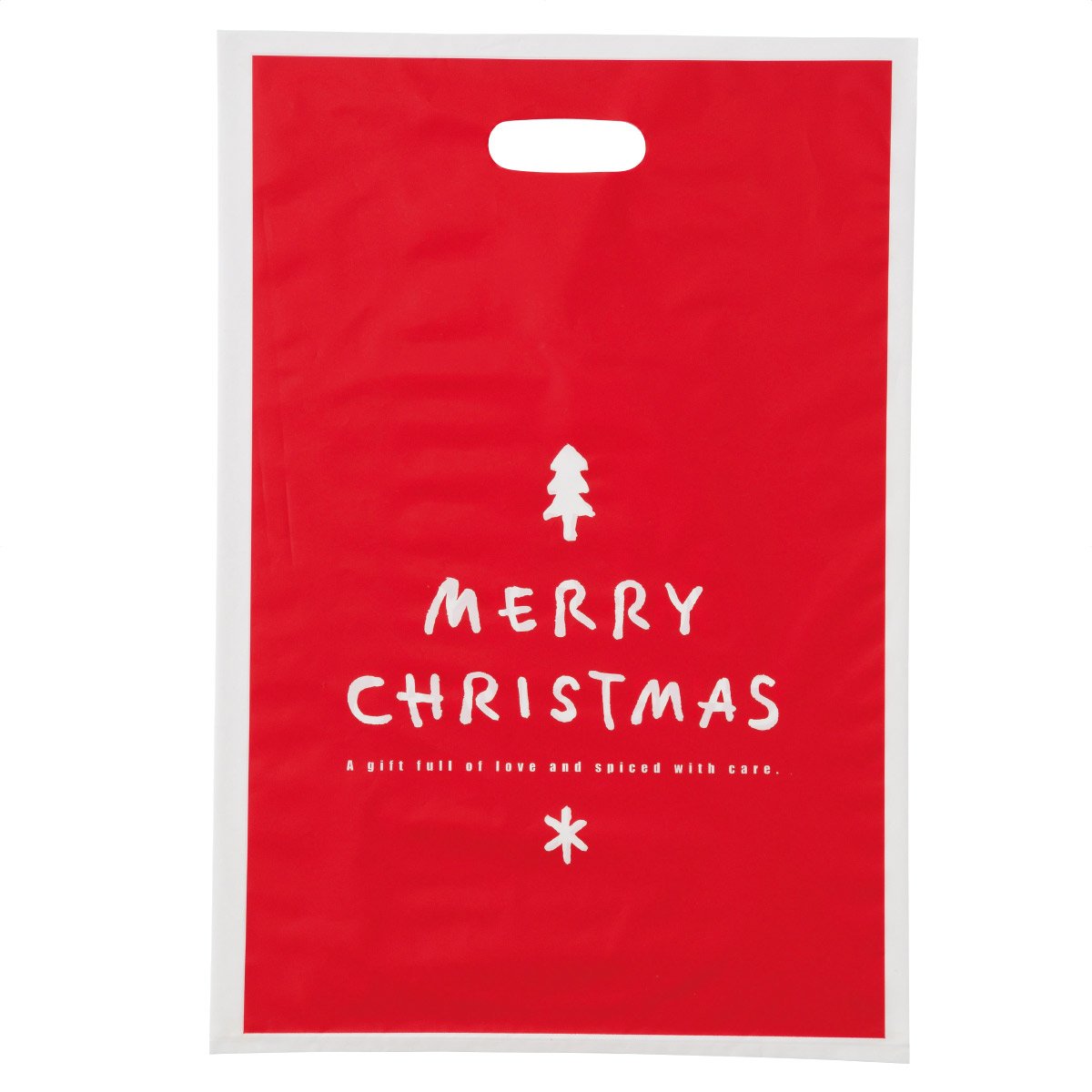 50枚 手提げポリ袋 シンプルメリークリスマス