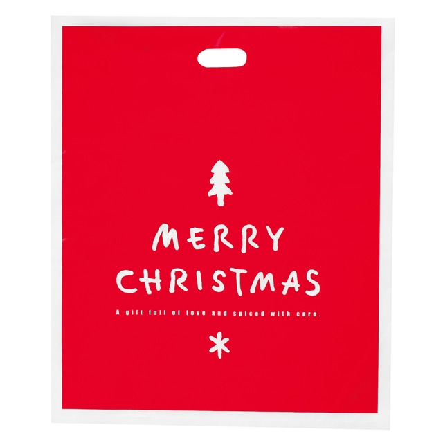 赤い袋に白文字で「MERRYCHRISTMAS」のシンプルなポリバッグは入れる商品を選びません。
