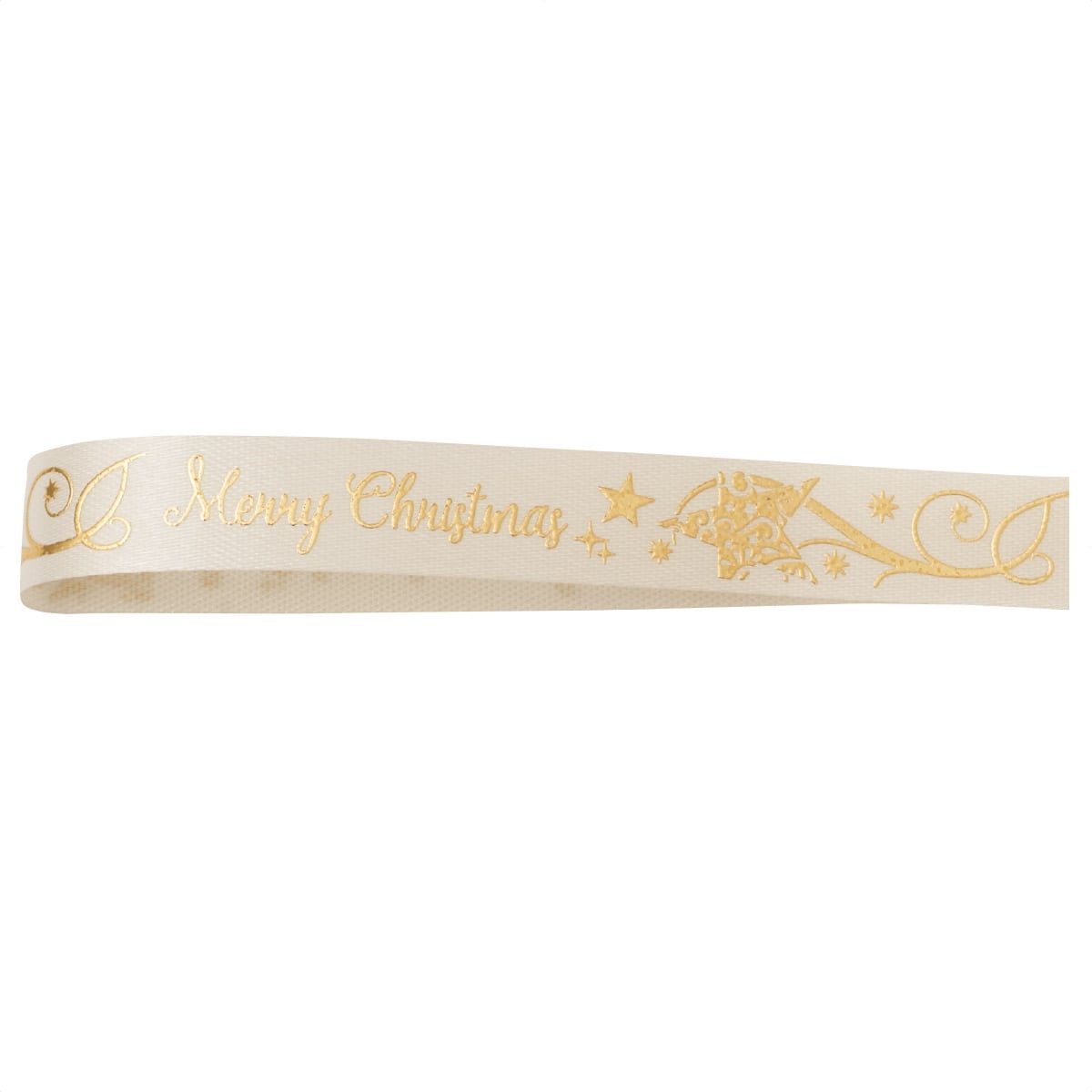 心を込めてリボンでクリスマスを彩ろう!盛り上がりのあるメタリックプリントで星の輝きを表現したリボン。