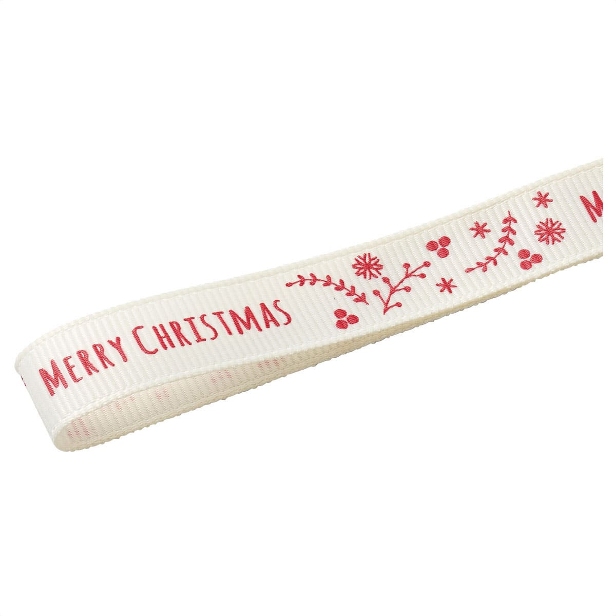 心を込めてリボンでクリスマスを彩ろう!手書き風の文字がかわいいクリスマス柄のグログランリボン。