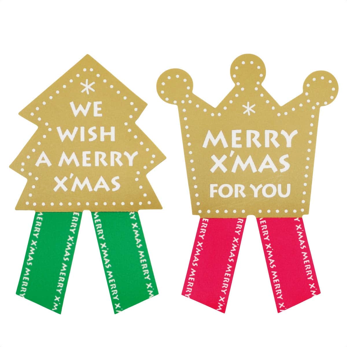 クリスマス定番のギフトリボンシール。コストパフォーマンスに優れたリボン型デザインのシールです。