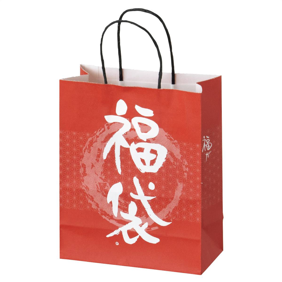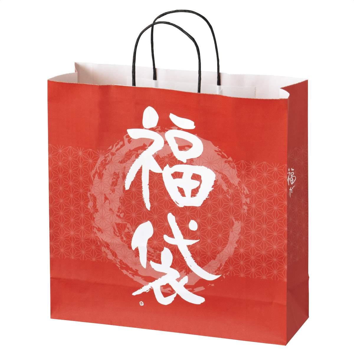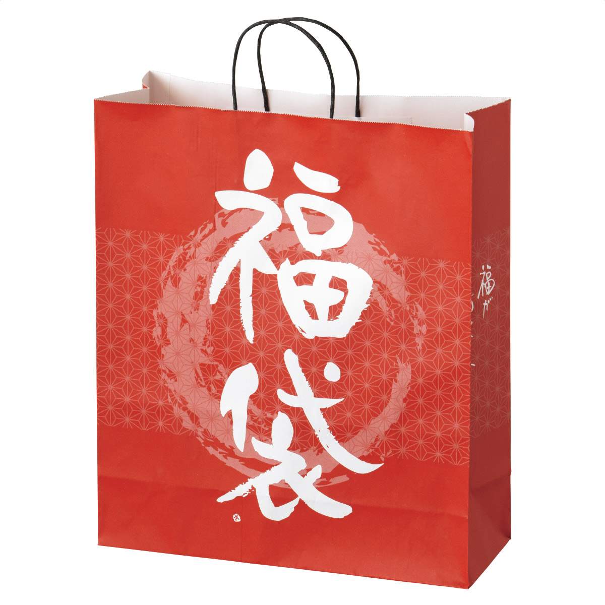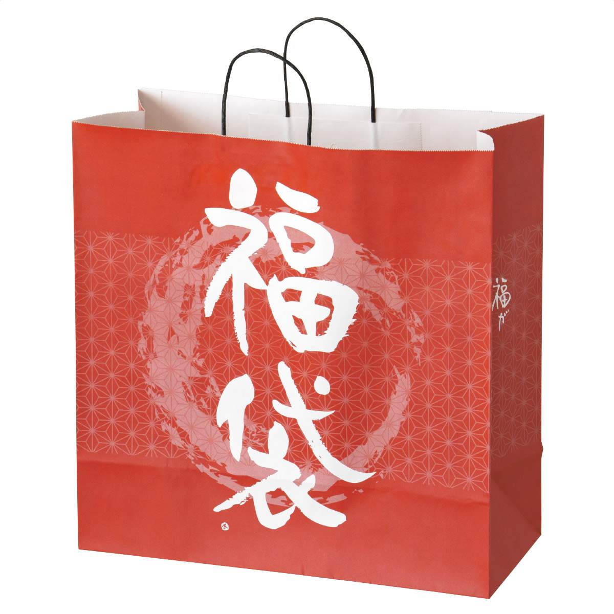 正月の初売りセールに欠かせない福袋用の袋。目を惹く赤で、売場を盛り上げる福袋です。