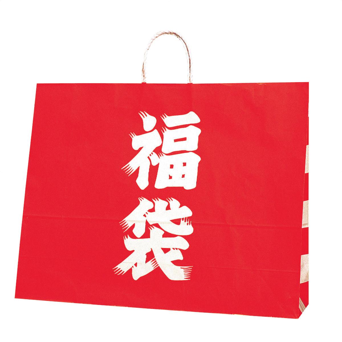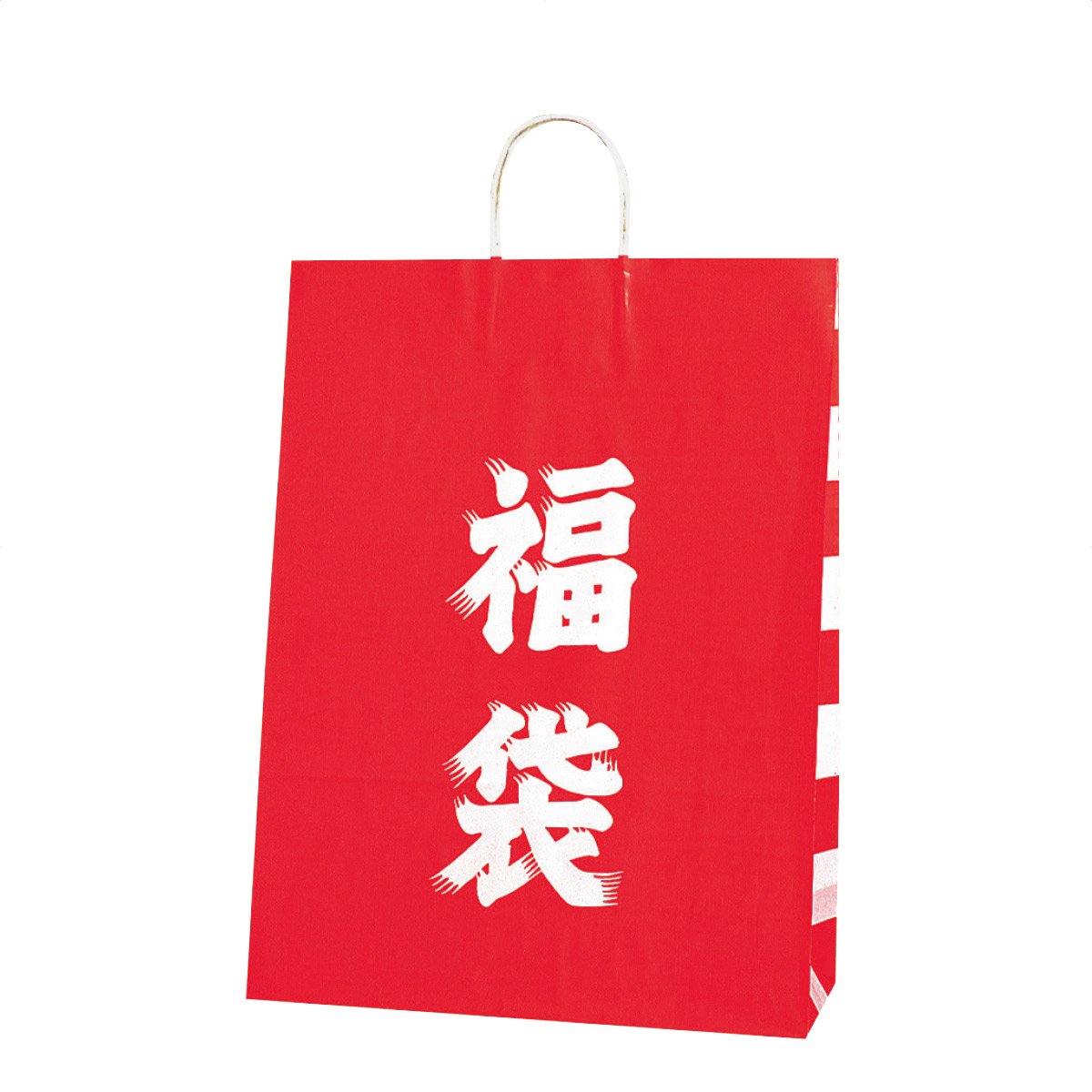 正月の初売りセールに欠かせない福袋用の袋。鮮やかな赤色と大胆な「福袋」の文字は、ひと目で福袋と分かりやすく、売り場でも目を引くこと間違いなし!
