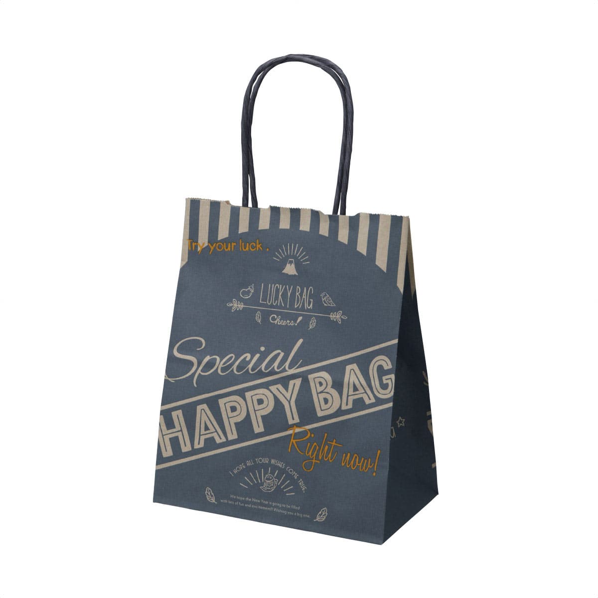 正月の初売りセールに欠かせない福袋用の袋。ネイビーは100%再生紙。バイオマスインキを使用したECO仕様です。