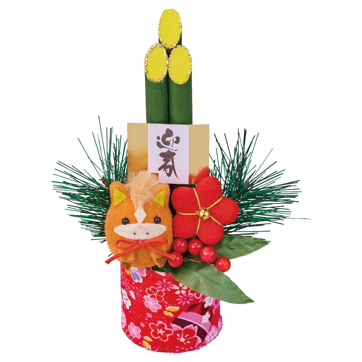 飾りやすい手のひらサイズの門松アレンジメントです。 午と獅子舞に縁起の良い椿と橙を合わせました。ミニタイプの門松は、棚上やレジ周りなどにぴったり!