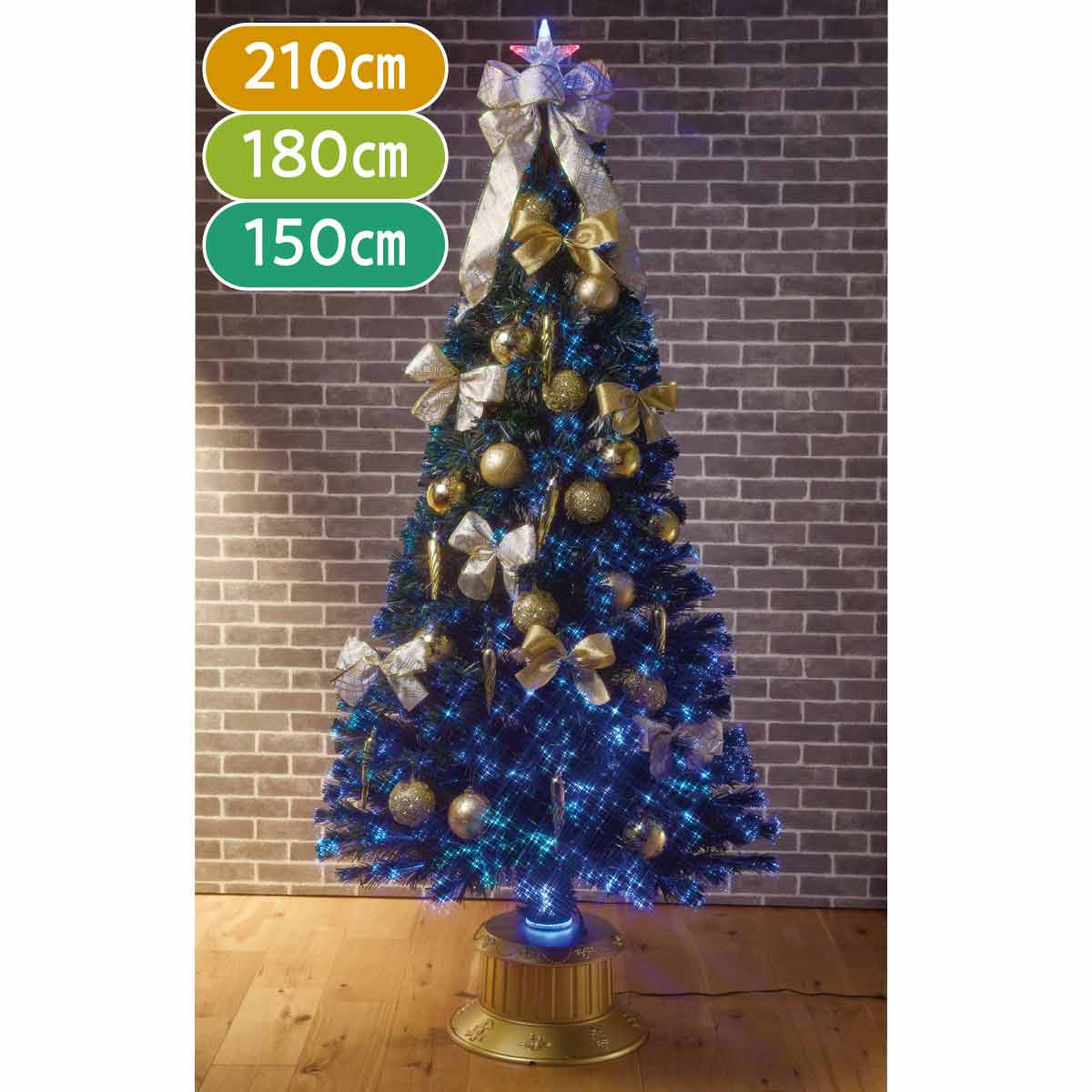 他店にはなかなかない大きなファイバーツリー。幻想的な光に包まれる、ゴールドオーナメントのクリスマスツリーです。