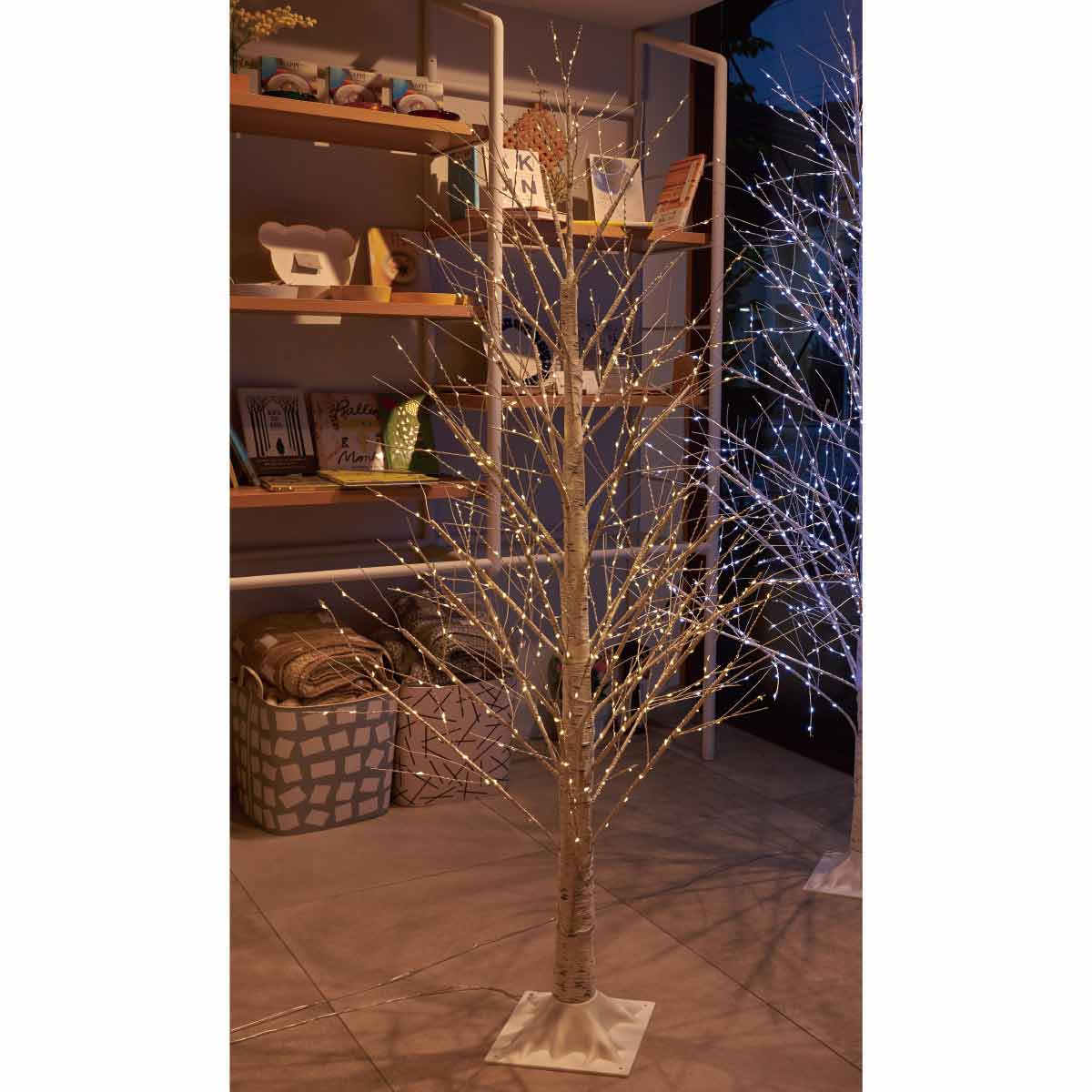 透明感のあるホワイトと、暖かみのあるウォームホワイトに、光の色を変更できます。球数も多く、繊細で美しいブランチツリーです。