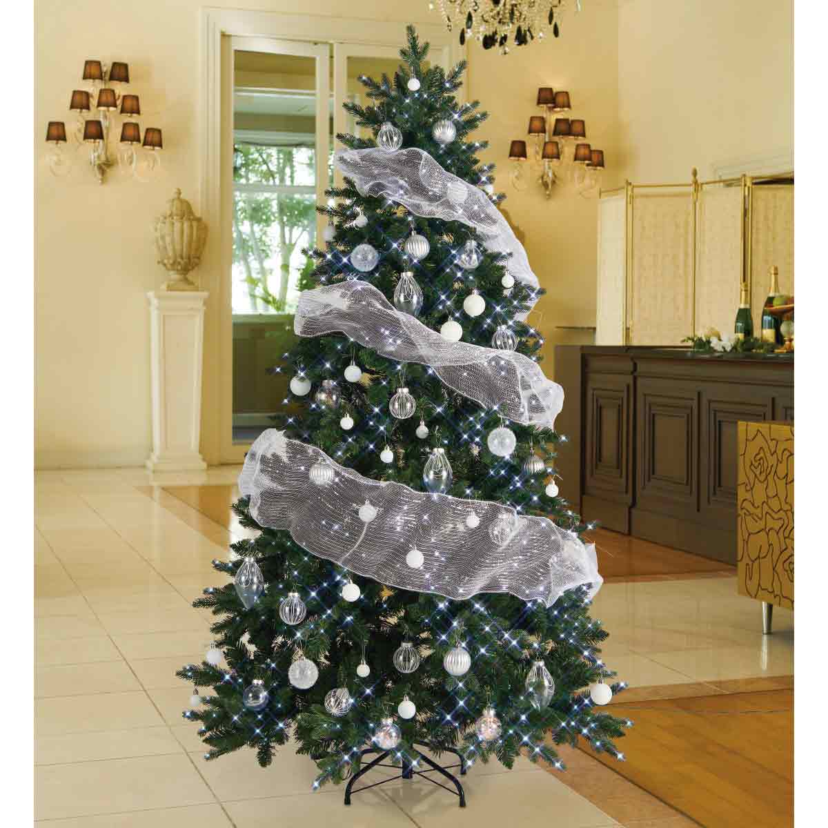 お買い得な特価ツリーシリーズ。上品なホワイト系のオーナメントにオーガンジーリボンをまとった美しいツリーで北欧テイストの温もりあるデザインです。