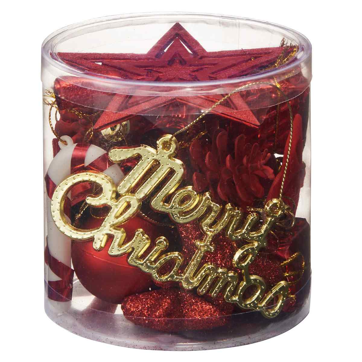 オーナメントセットは、リボン、ボール、ステッキ、プレゼント、ベル、松ぼっくりなどが入っています。