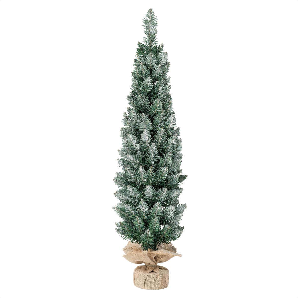 ナチュラル感たっぷりの白いクリスマスツリー。省スペースのスリムタイプ。