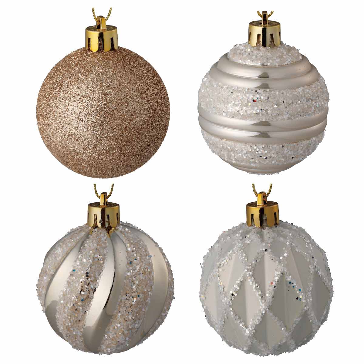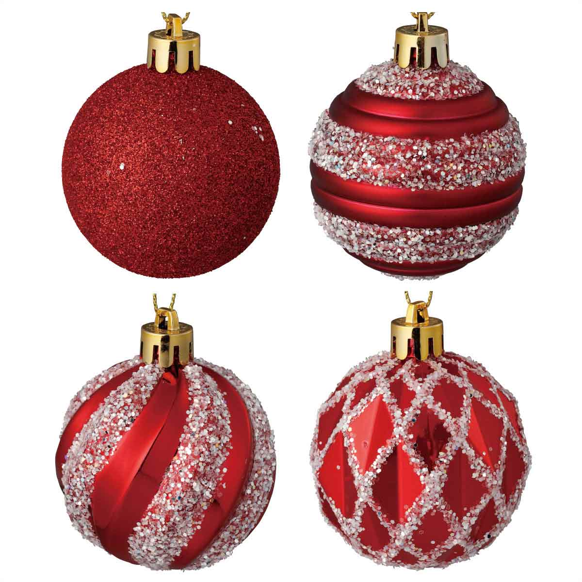 カラーは赤とゴールドの2色。ボールの模様は4種類のデザインがあり、各3個ずつ計12個がセットになったお得なオーナメントセットです。