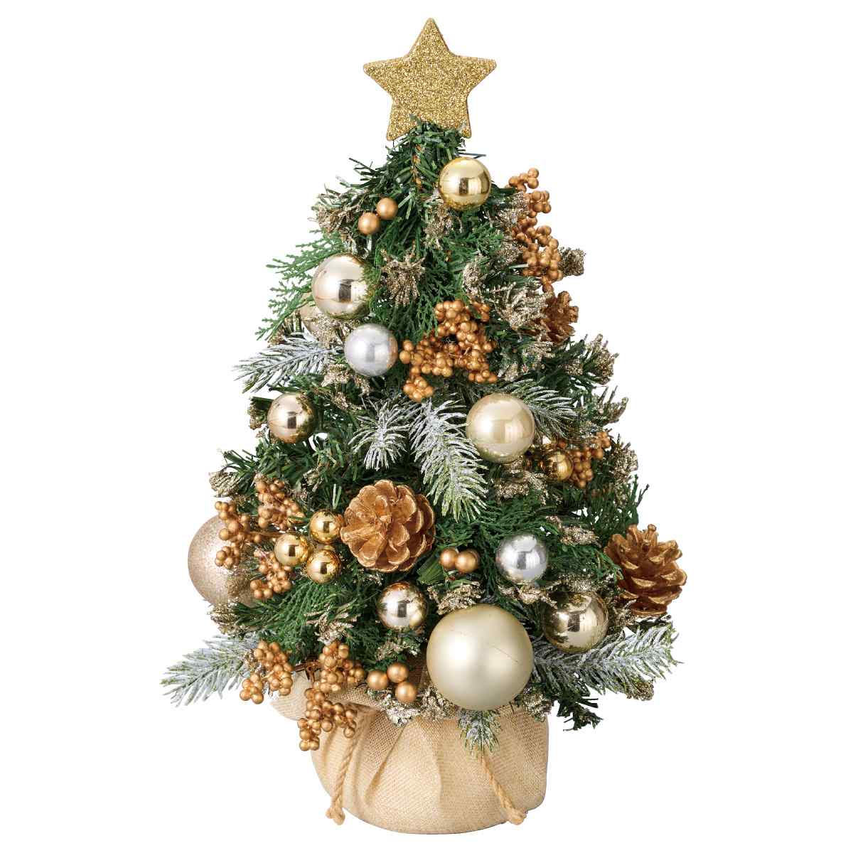 華やかなデコレーションとナチュラルなジュートラップの組み合わせがオシャレなツリーです。ツリートップのキラリと輝く星がポイントです。
