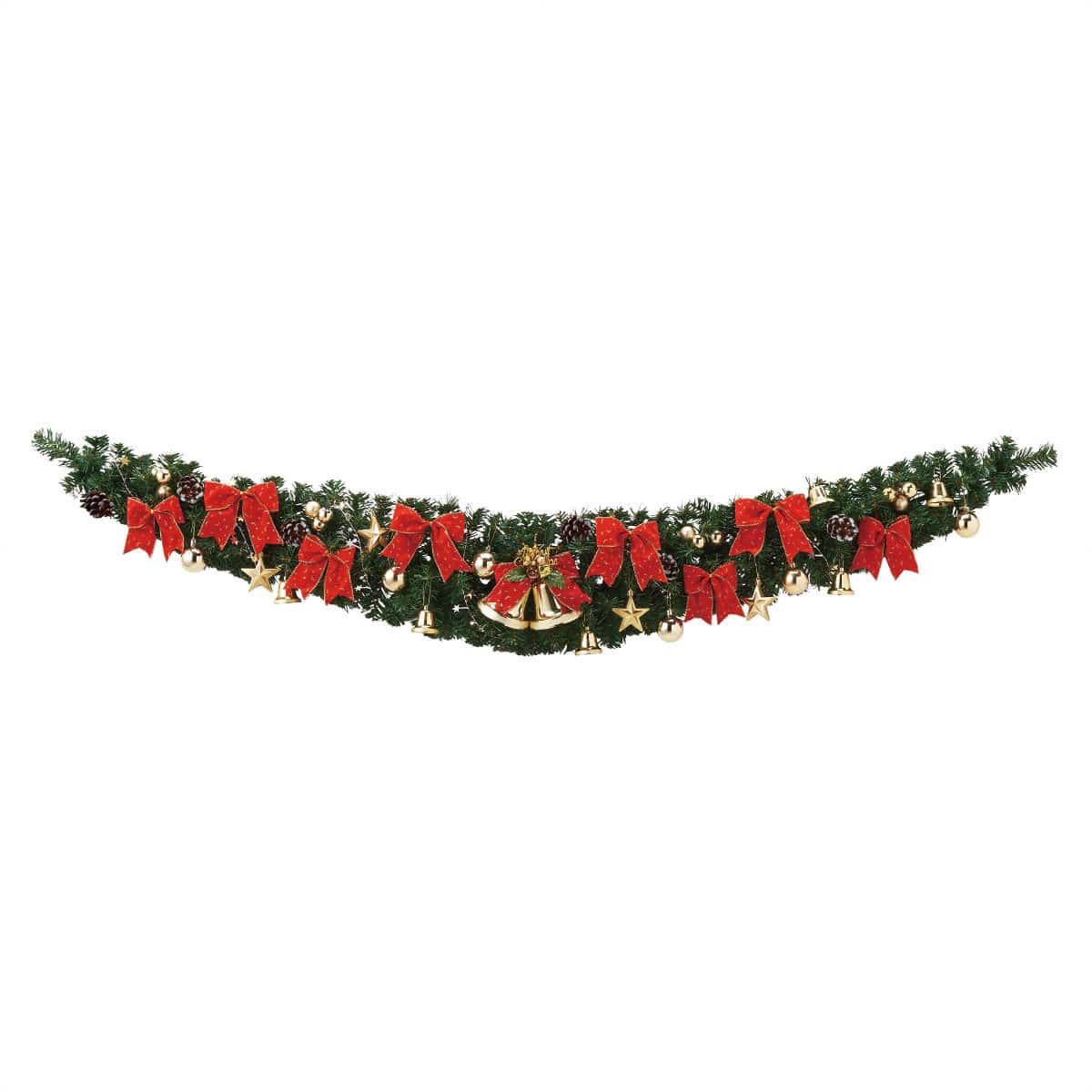 赤・ゴールド・シルバーのリボンやボールのオーナメント付きのクリスマスらしいスタンダードタイプのガーランドが集合!壁面や手すりに飾り付けてクリスマスをグレードアップ!
