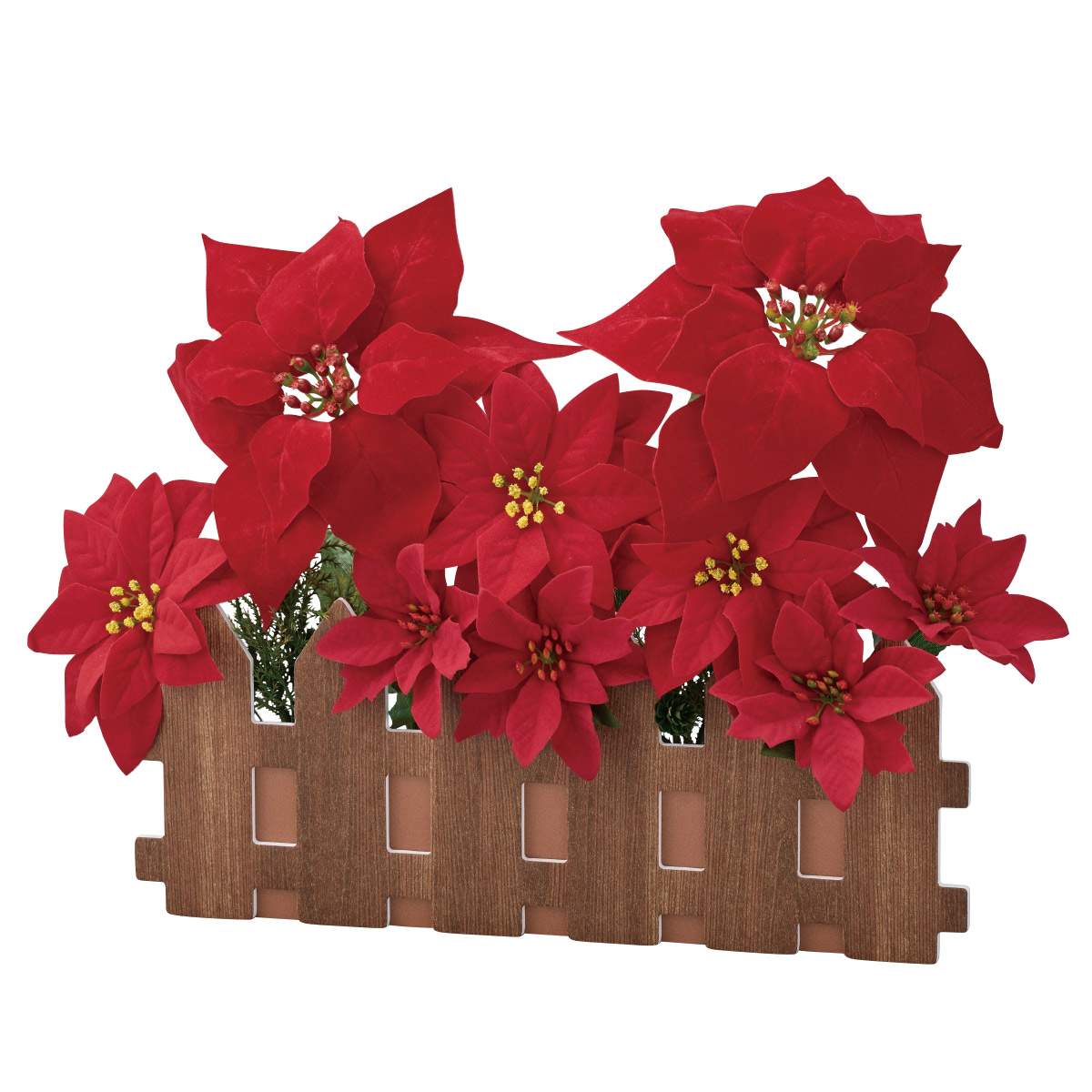 ポインセチア造花の垣根アレンジです。