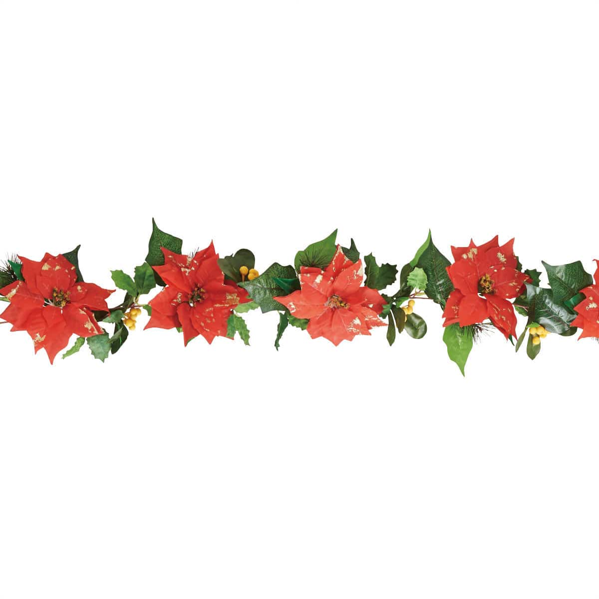ポインセチアヒイラギ造花ガーランド
