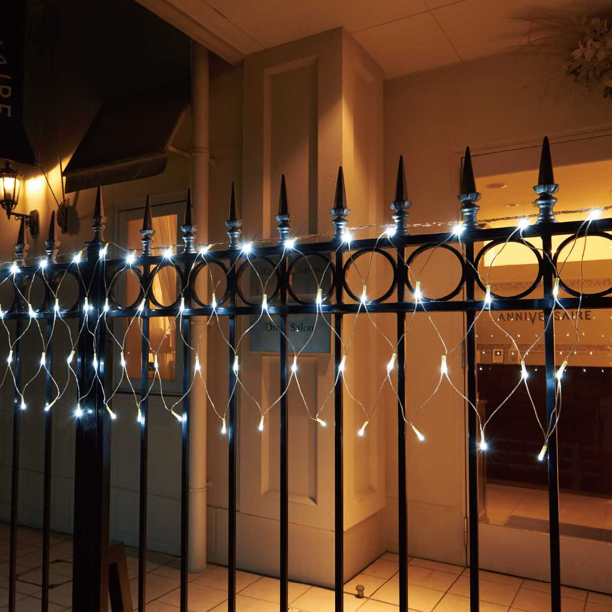 ライトがネット状になっているので、フェンスや生垣・壁面などに簡単にクリスマスイルミネーションの飾りつけができます。