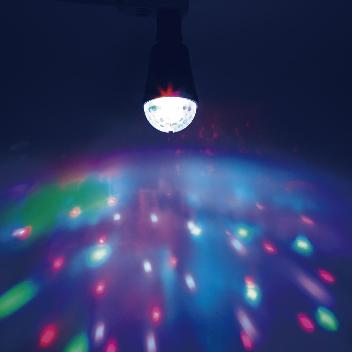 パーティームードを演出するお手軽ディスコライト。電球ソケットでもコンセントでも使用できます。