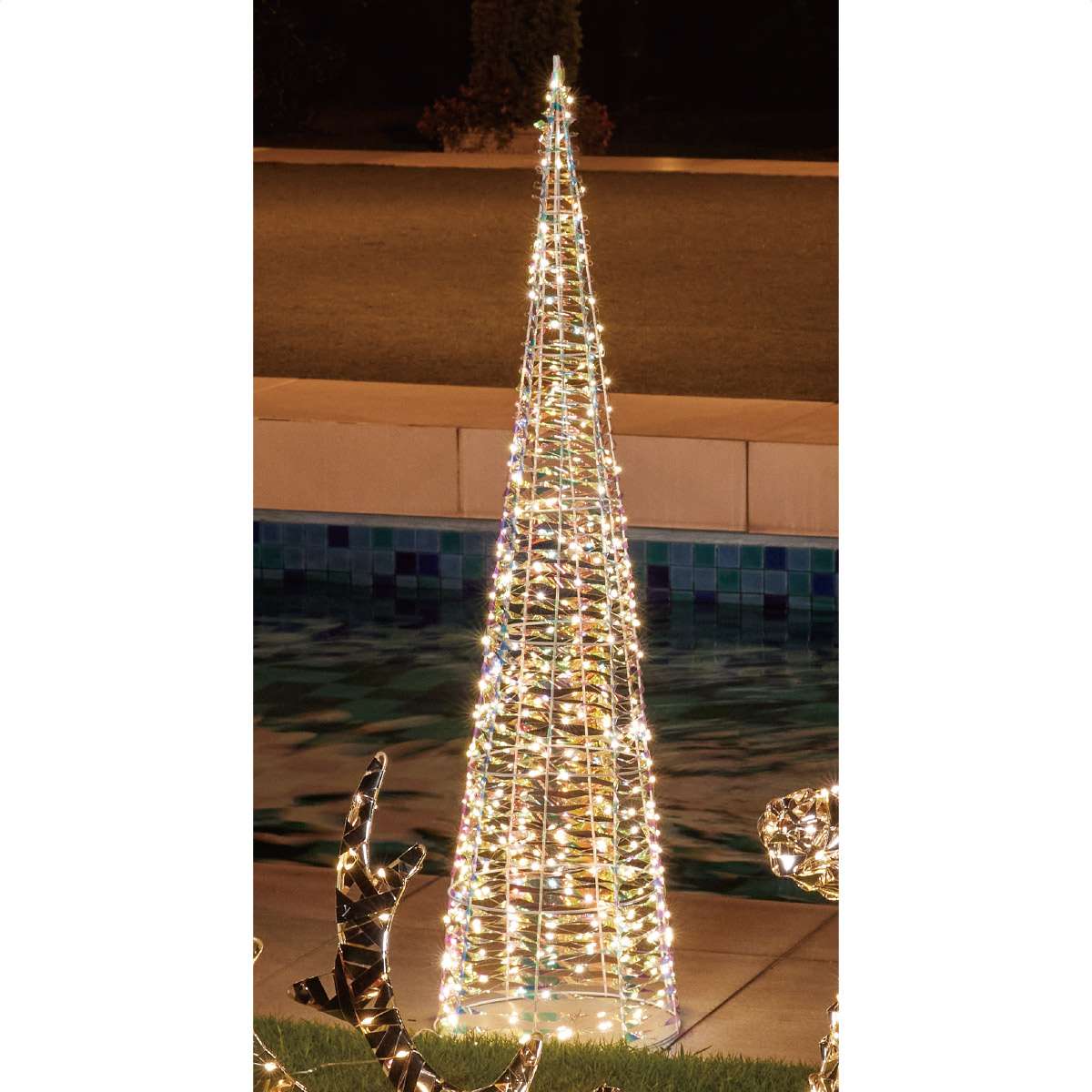 ホログラムリボン×ビーズライトの独特の輝きが美しい、組み立て式クリスマスツリー型ライト。