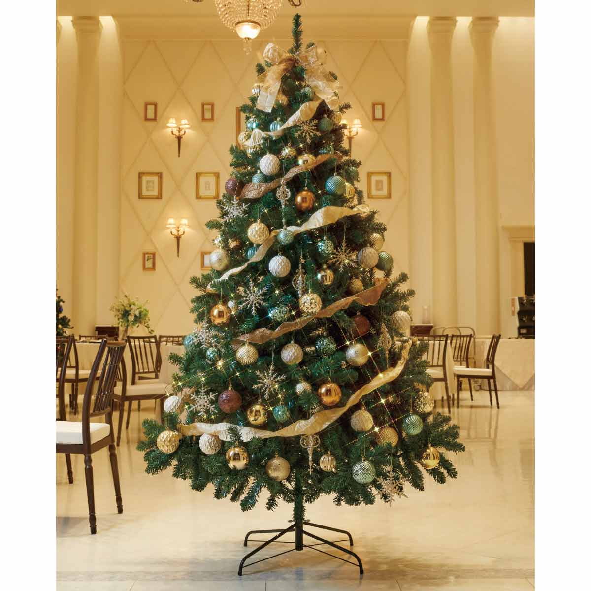 店舗やオフィスの本格的でおしゃれなクリスマスツリーならストエキ!豊富なLEDライトとオーナメントがセットで低価格なのが魅力です。存在感抜群の飾り付けで、集客効果もアップ。設置も簡単でイベントにも最適です。