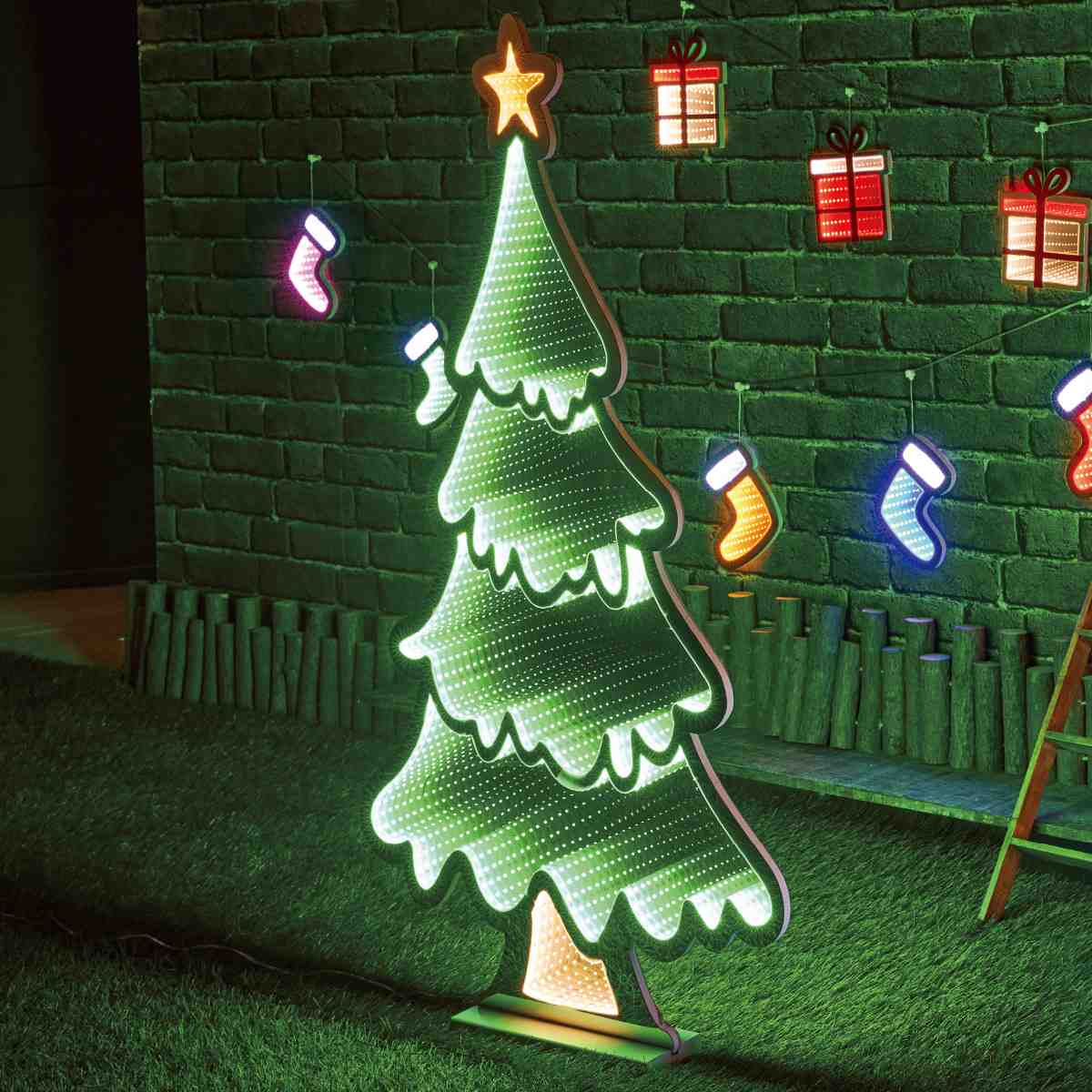 特殊な鏡の配置と光の組み合わせによって、光が何層にも奥へ続いていくかのような幻想的な空間を演出できるイルミネーションライトです。