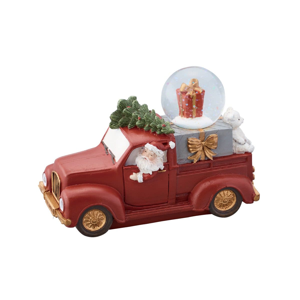 小さなスノードームが付いたクリスマスオブジェ。かわいいキャラクターのスノードームスタンドです。1つ置くだけでクリスマスの雰囲気が出ます。トラックはヘッドライトが光ります。
