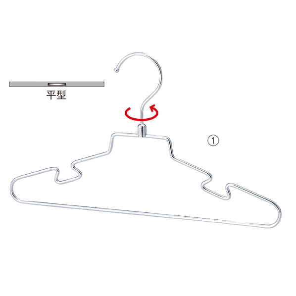 - 61-758-6、61-200-2・5~12のサイズチップに対応しています。※ボトムハンガーの写真内のサイズ表記はクリップ間の最大値です。※フックは回転します。※色移りの原因になりますので、湿った服を掛けたり、スチームアイロンのご使用はおやめください。