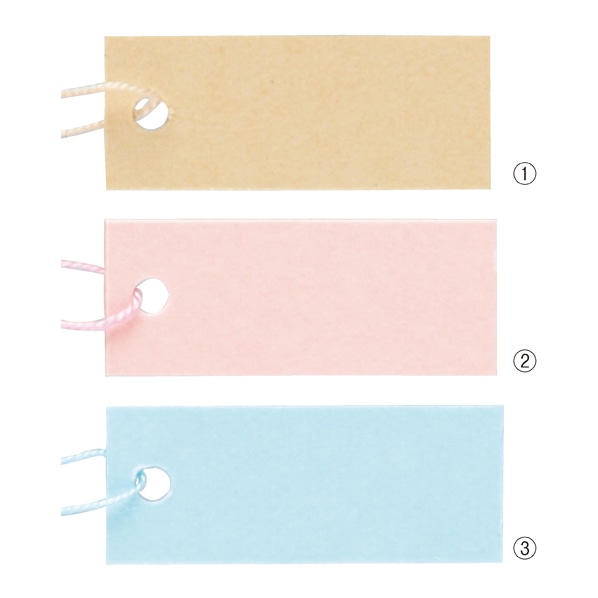 小物雑貨に使いやすい、ミニサイズのシンプルなさげ札です。さげ札と同系色の糸付き。