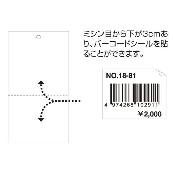 ミシン目から下が3cmあり、バーコードシールを貼ることができます。