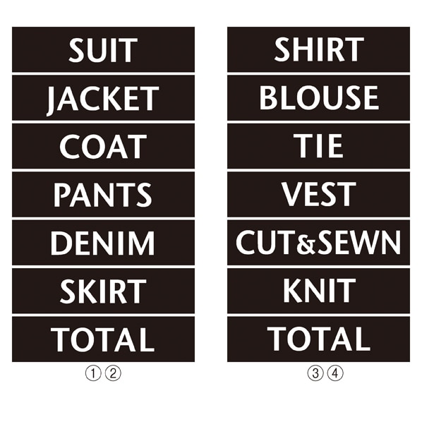 トータルプライススタンドと合わせてコーディネートの価格表示ができるマグネットシート。ハイセンスに魅せる英文字シリーズ。