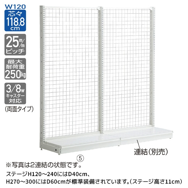 本体H120~240にはD40cmステージ、本体H270~300にはD60cmステージが標準装備されています。(ステージ高さ11cm)