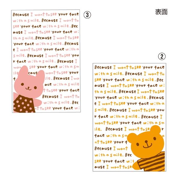 両面からうさことくまおが覗きこむ柄がなんともキュートです。裏面は後ろ姿になっています。