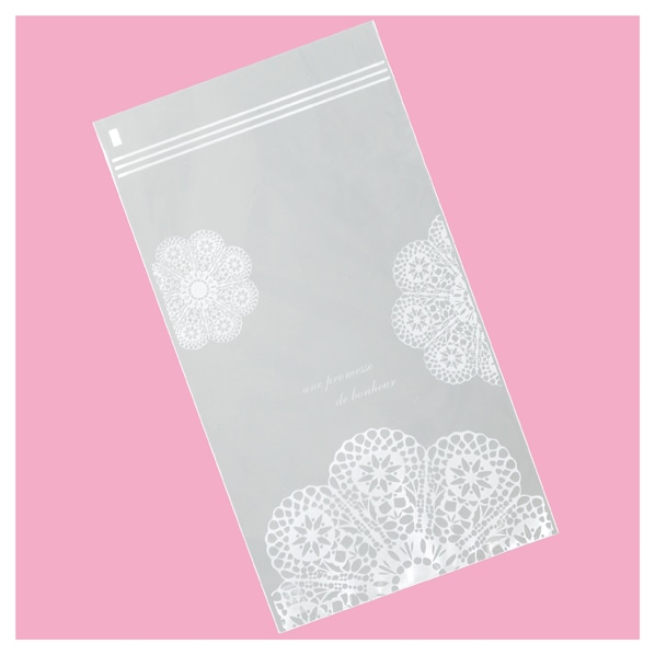 【レースィシリーズ】かわいらしいレース柄のOPP袋。業種・世代を問わず使いやすいシリーズです。