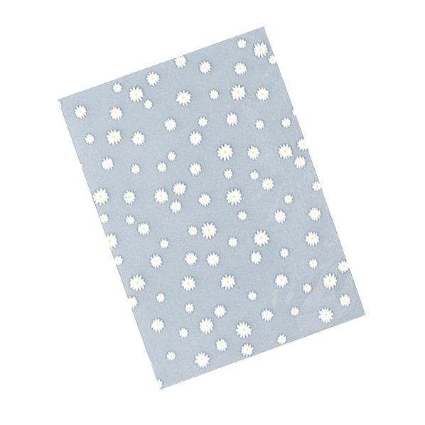 白いお花がかわいらしいOPP袋。シンプルなデザインなのでさまざまな場面でお使いいただけます。クリスタルパックは、国産のフィルムを使用した高品質で安心のシリーズです。