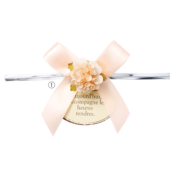 「花が咲く」という意味を持つフルリール(造花)がついた、ふんわりしたやわらかいカラーが素敵なワイヤータイです。