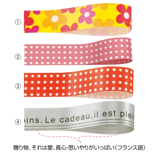 ハサミの背などで軽くしごくだけで、くるくるとカールするリボンです。ギフト包装のアクセントに。